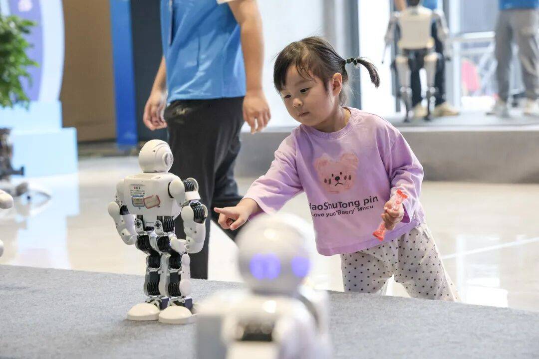 △学生们现场通过机械人脚球赛、机械人象棋、机械人互动体验等,近距离感触感染AI科技的魅力。图片由CNSPHOTO供给)。